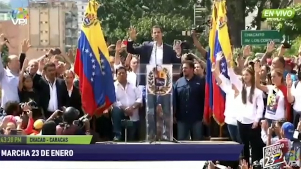 En una jornada de máxima tensión, con manifestaciones callejeras, enfrentamientos entre sectores chavistas y antichavistas y denuncias cruzadas de "usurpación", la oposición dio el primer paso con el juramento de Guaidó, quien se proclamó presidente en su condición de jefe de la Asamblea Nacional (AN, Parlamento), con el inmediato respaldo de Estados Unidos.